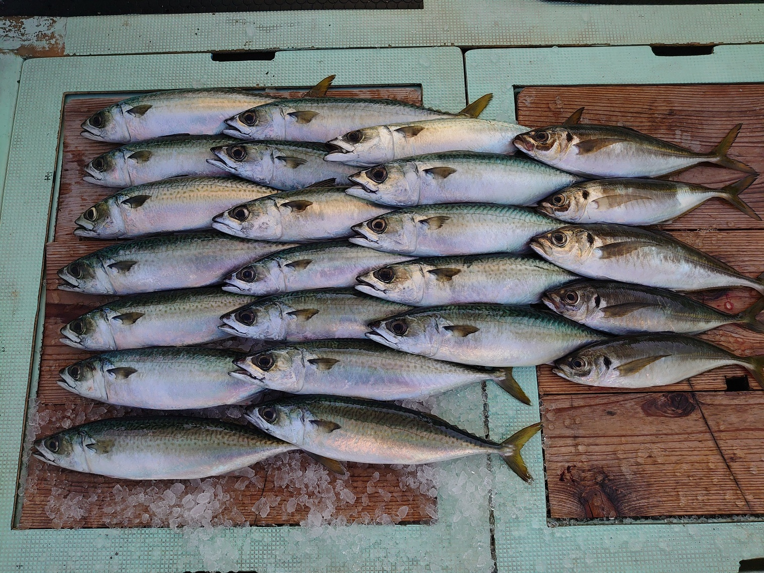 アジ 小~中35匹、サバ 1匹