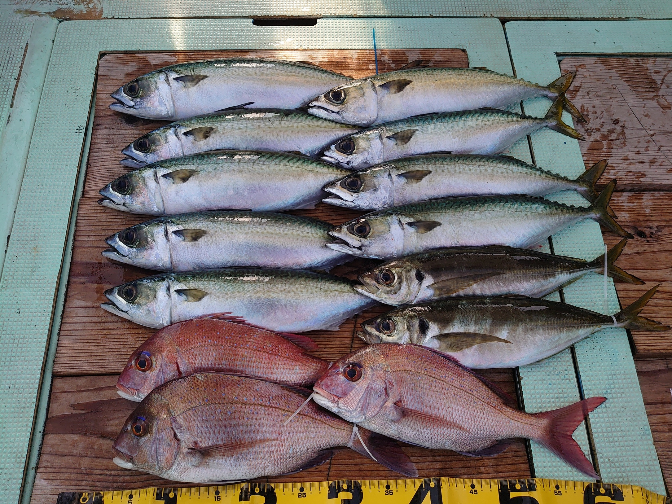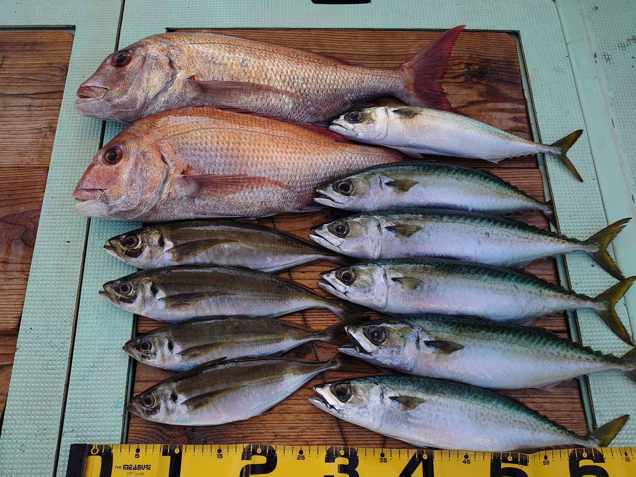 鯛 30~57cm 9匹、アジ 2匹、
