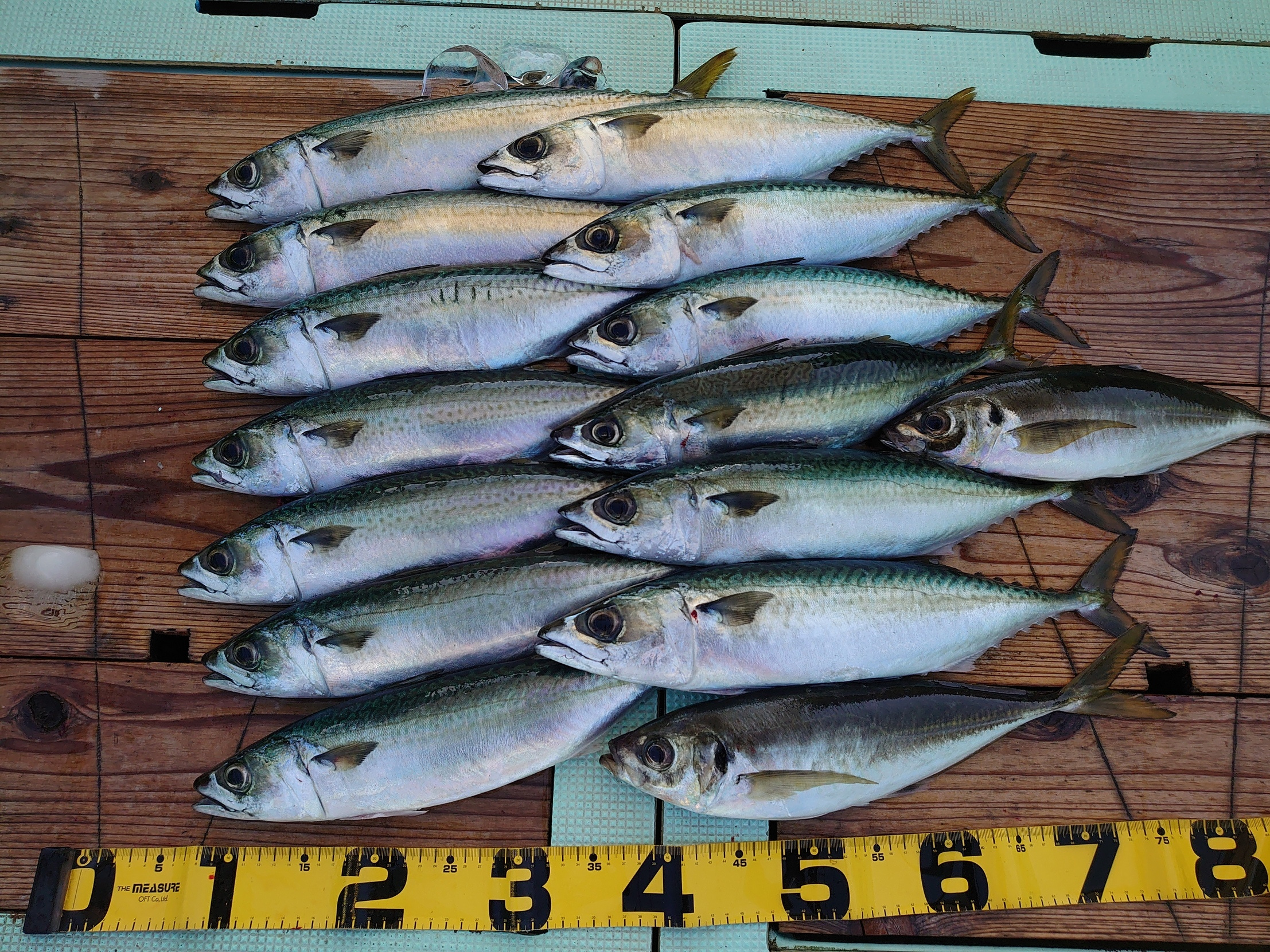 サバ 13匹、アジ 2匹