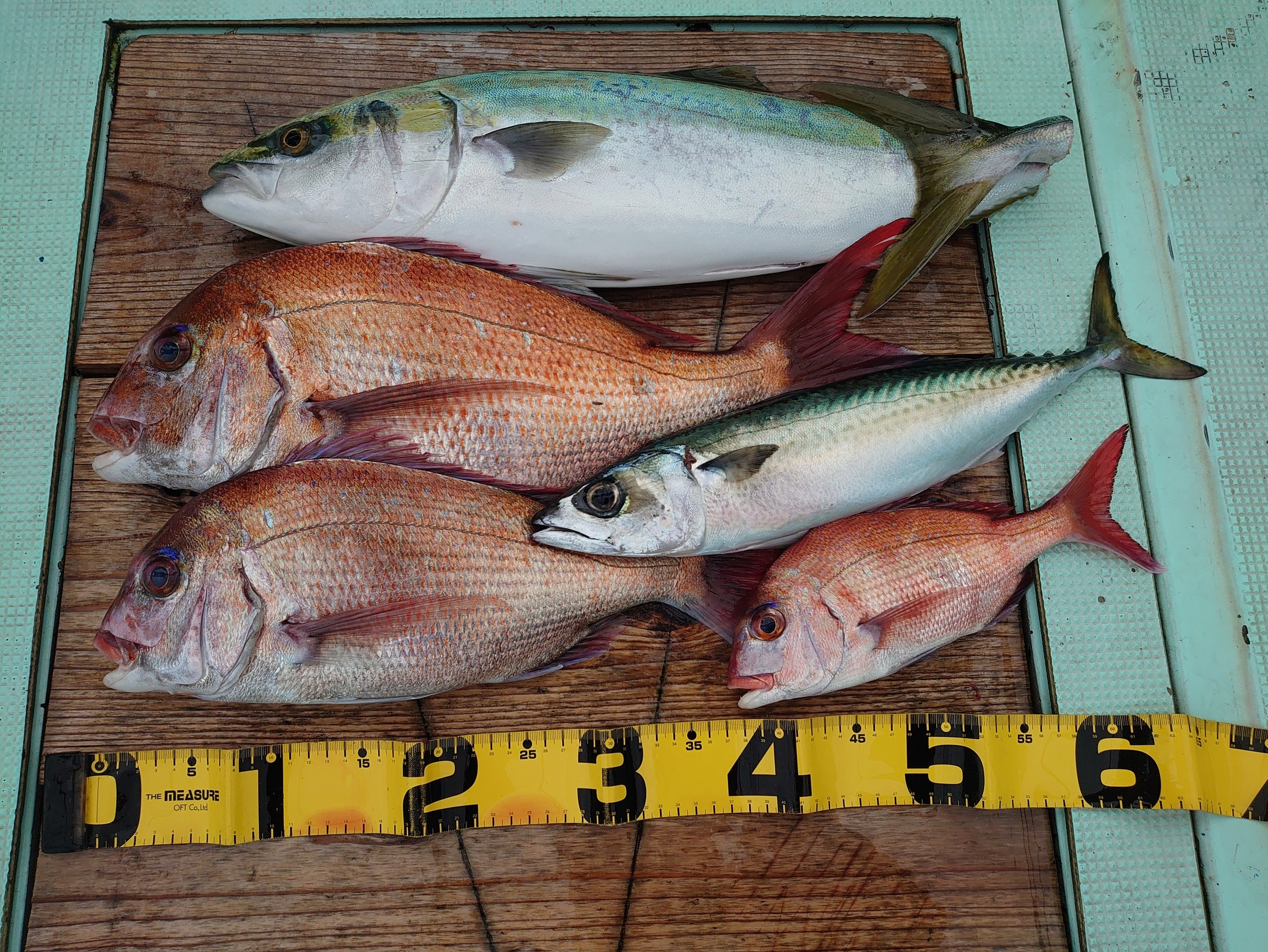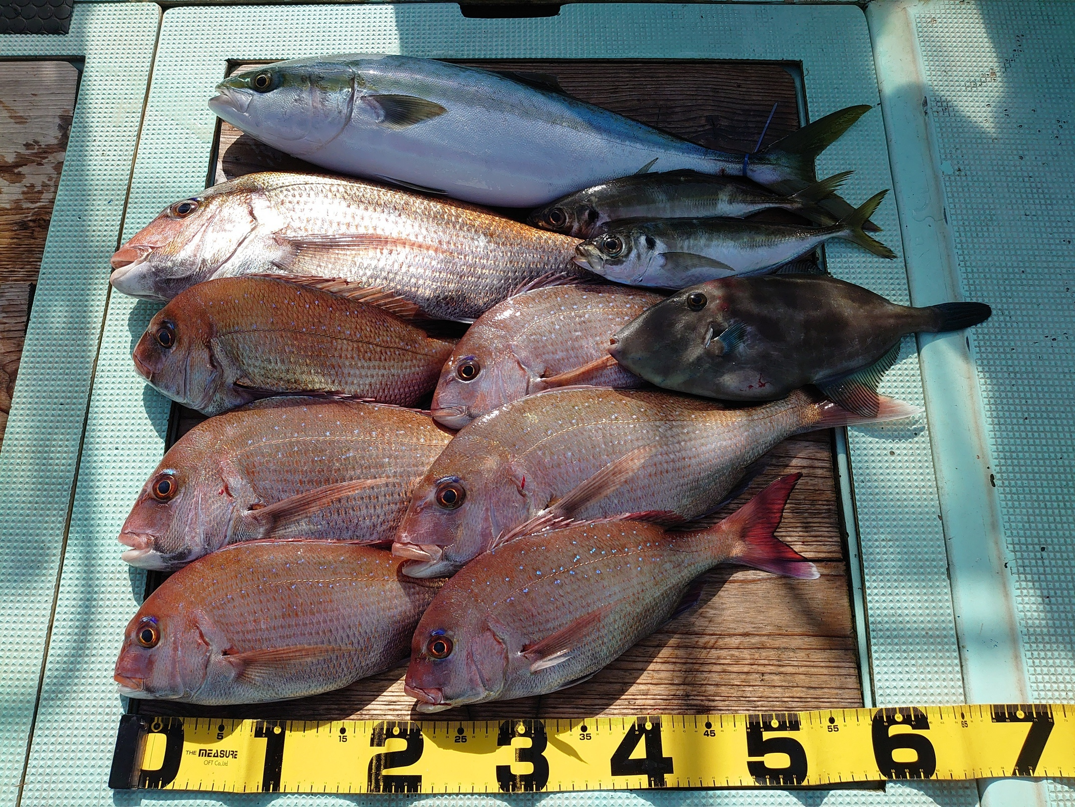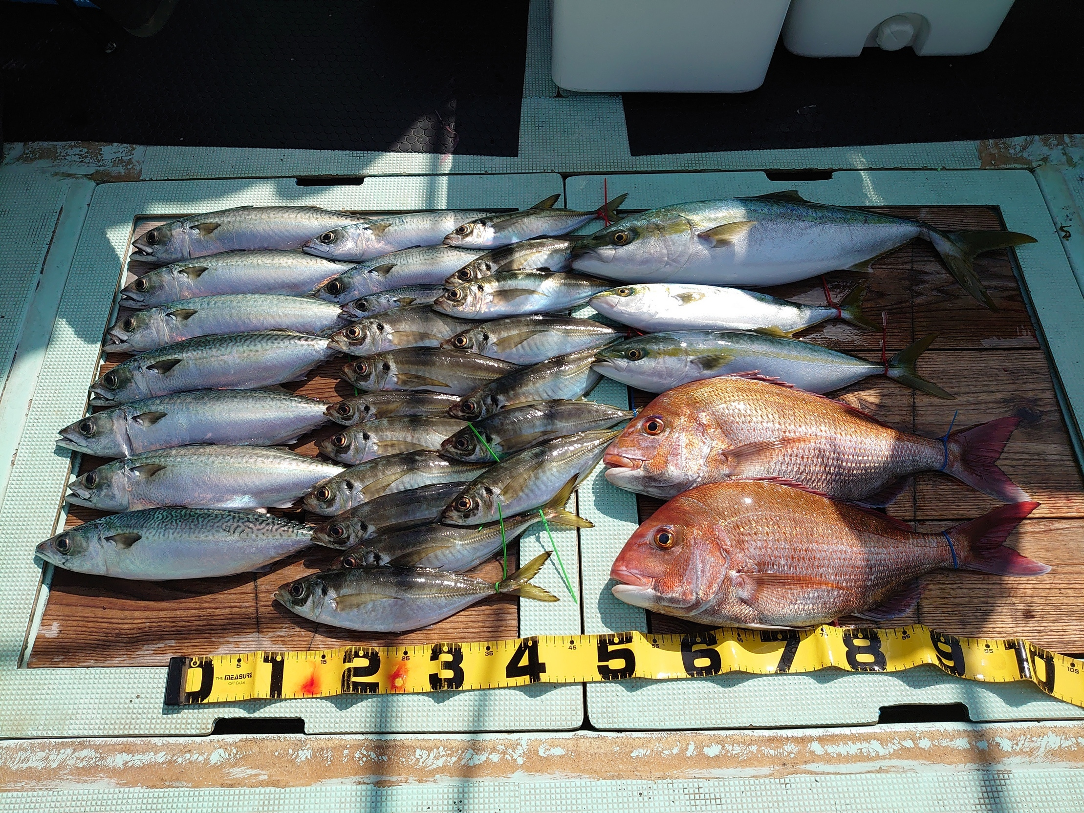 鯛 33~74cm 9匹、アジ 小~中、メジロ 1匹、ハマチ 2匹