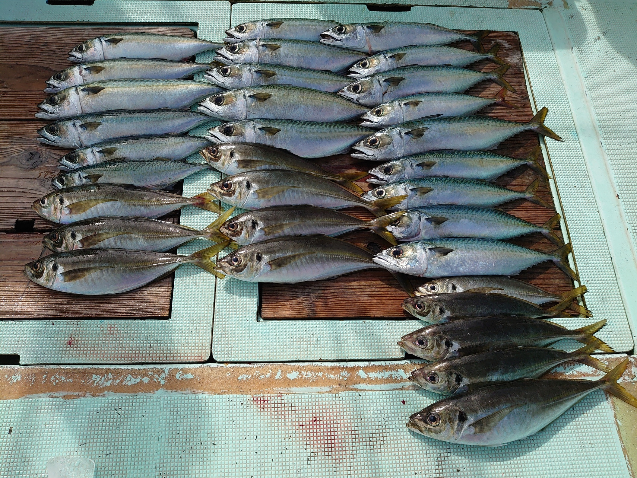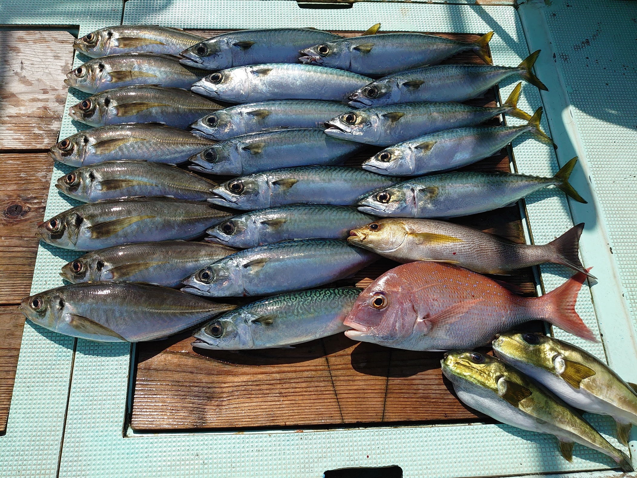 アジ 12匹、サバ 20匹