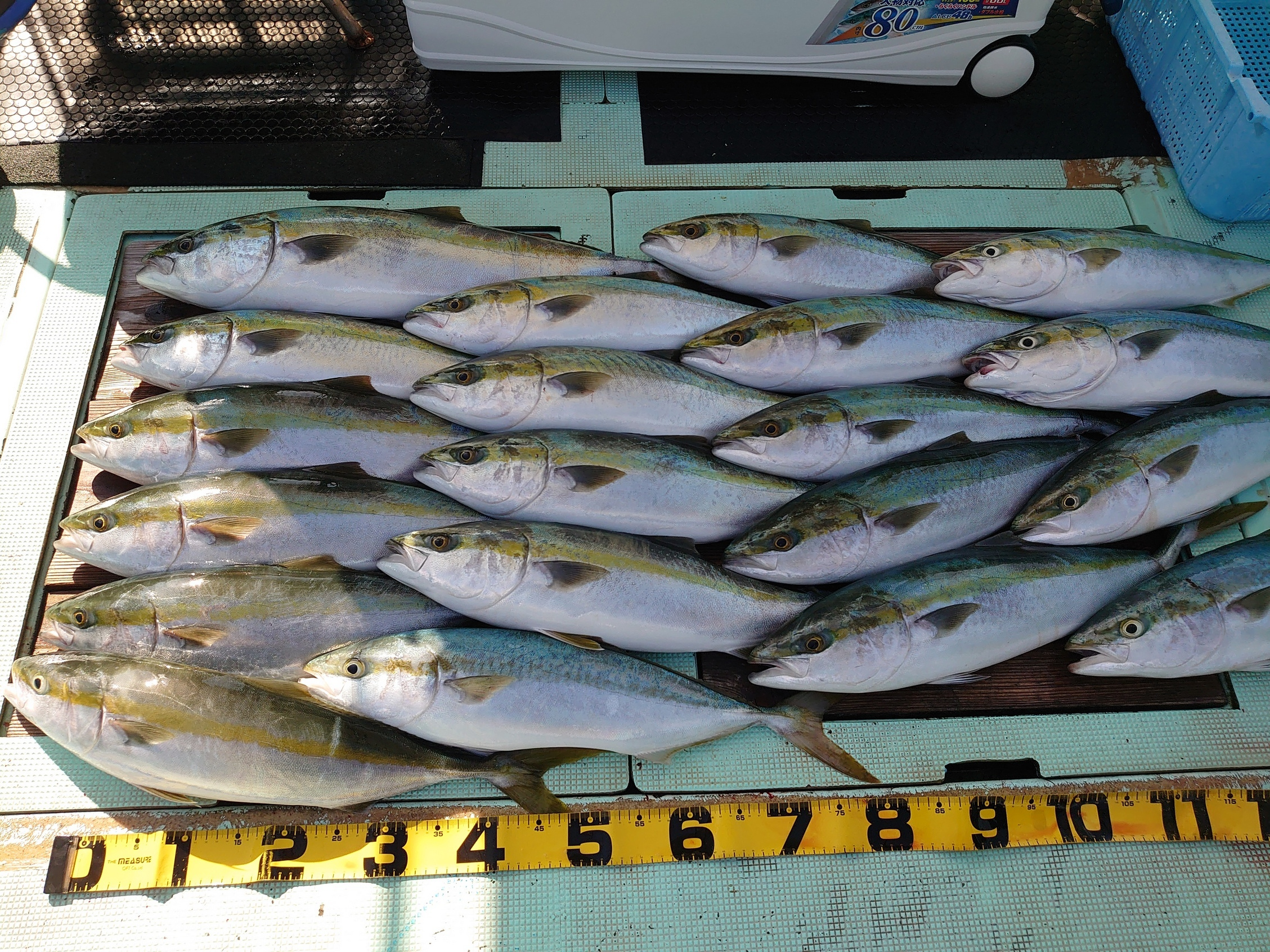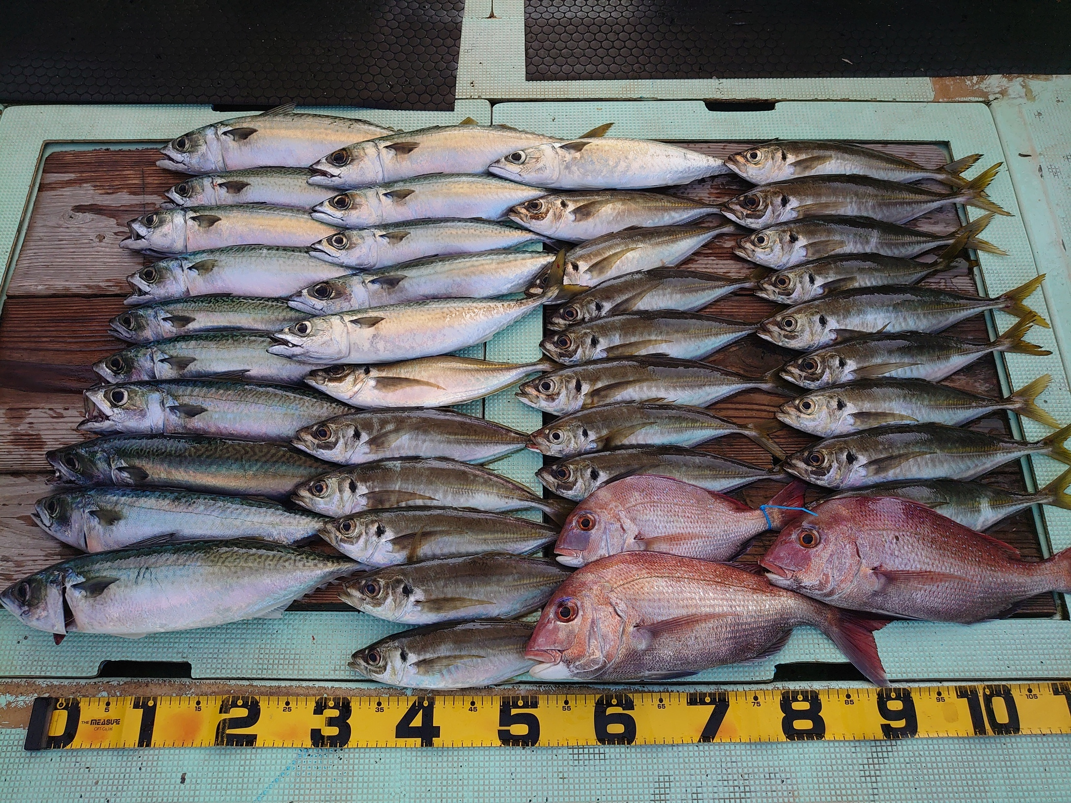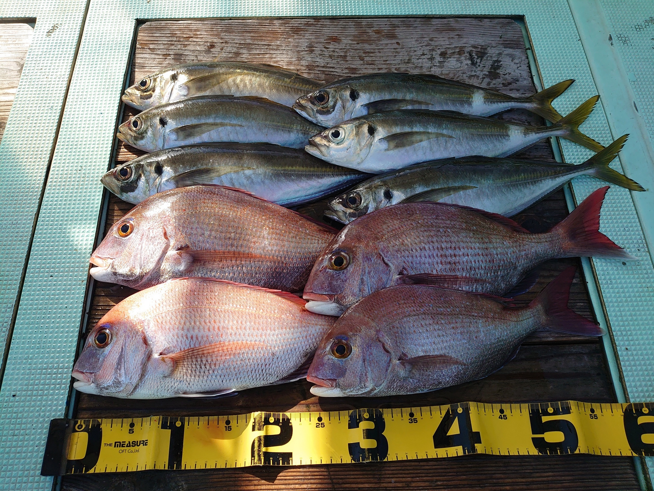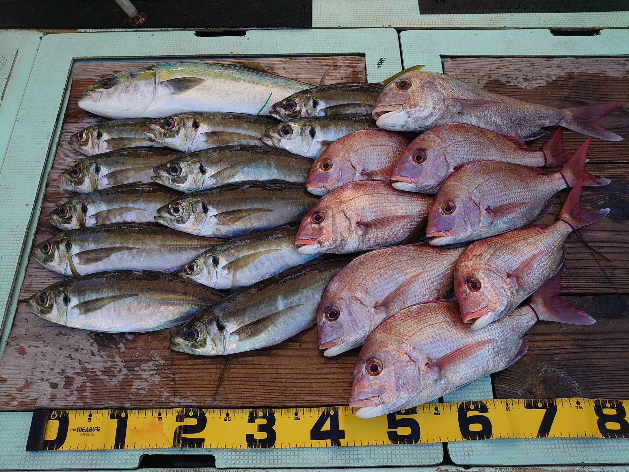 アジ 12匹、メジロ 1匹