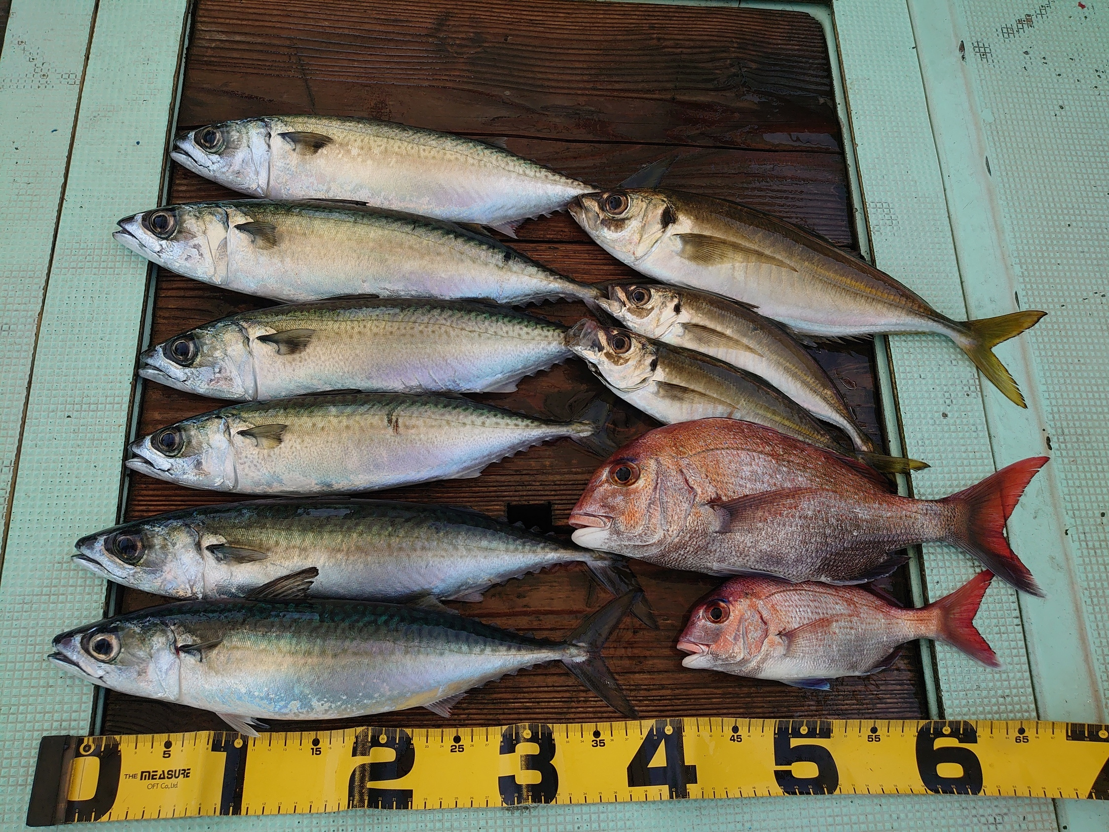 サバ 6匹、アジ 1匹