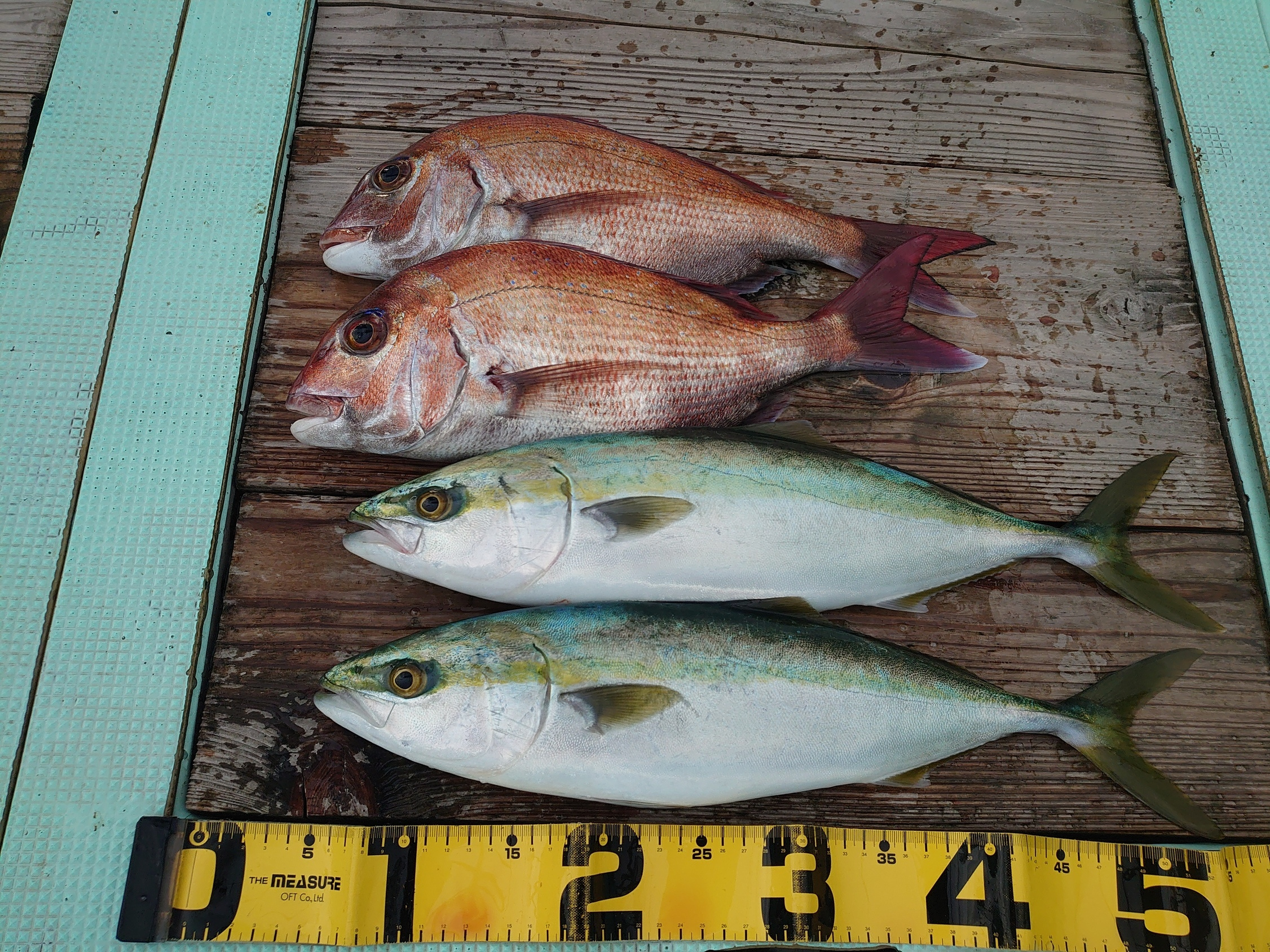 鯛 41cm 2匹、ハマチ 2匹