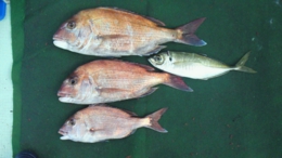 鯛45cm46cm54cm3匹 サゴシ50cm1匹アジ37cm1匹