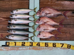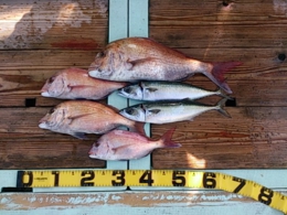 鯛 39~50cm 8匹、サバ 1匹