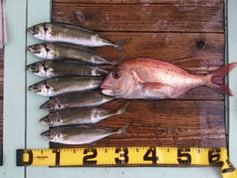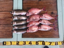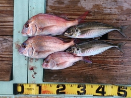 鯛小 2匹、アジ 35~41cm 7匹、