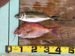 メバル 1匹、アジ 1匹