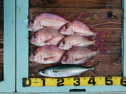 鯛 28~52cm 26匹、イサギ 5匹、サバ 1匹、アジ 1匹