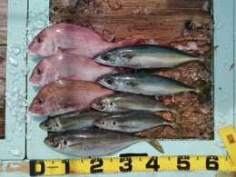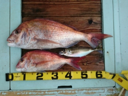 アジ 3匹、鯛 40、60cm 2匹、