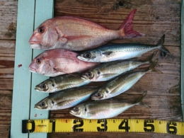 アジ 5匹、サバ 1匹