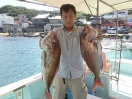 鯛 42cm 1匹、丸アジ 2匹