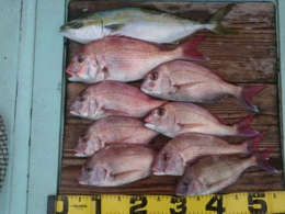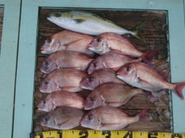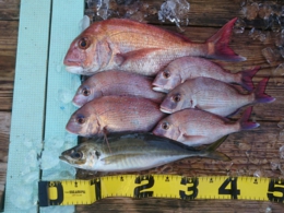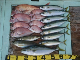鯛 69cm 1匹、アジ 12匹、