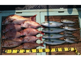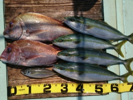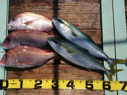 鯛 37~61cm 6匹、ハマチ 11匹