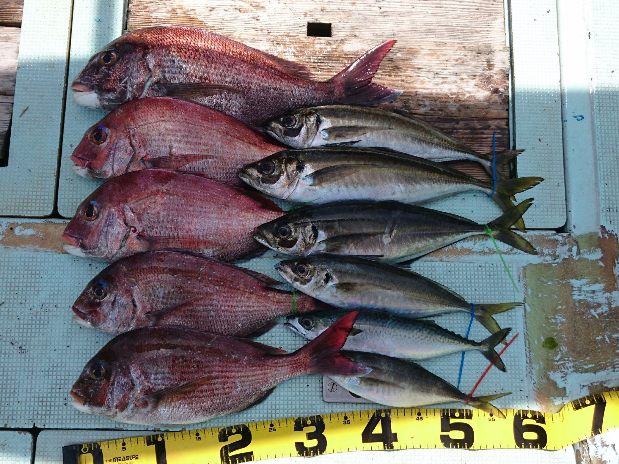アジ 3匹、ハマチ 4匹、