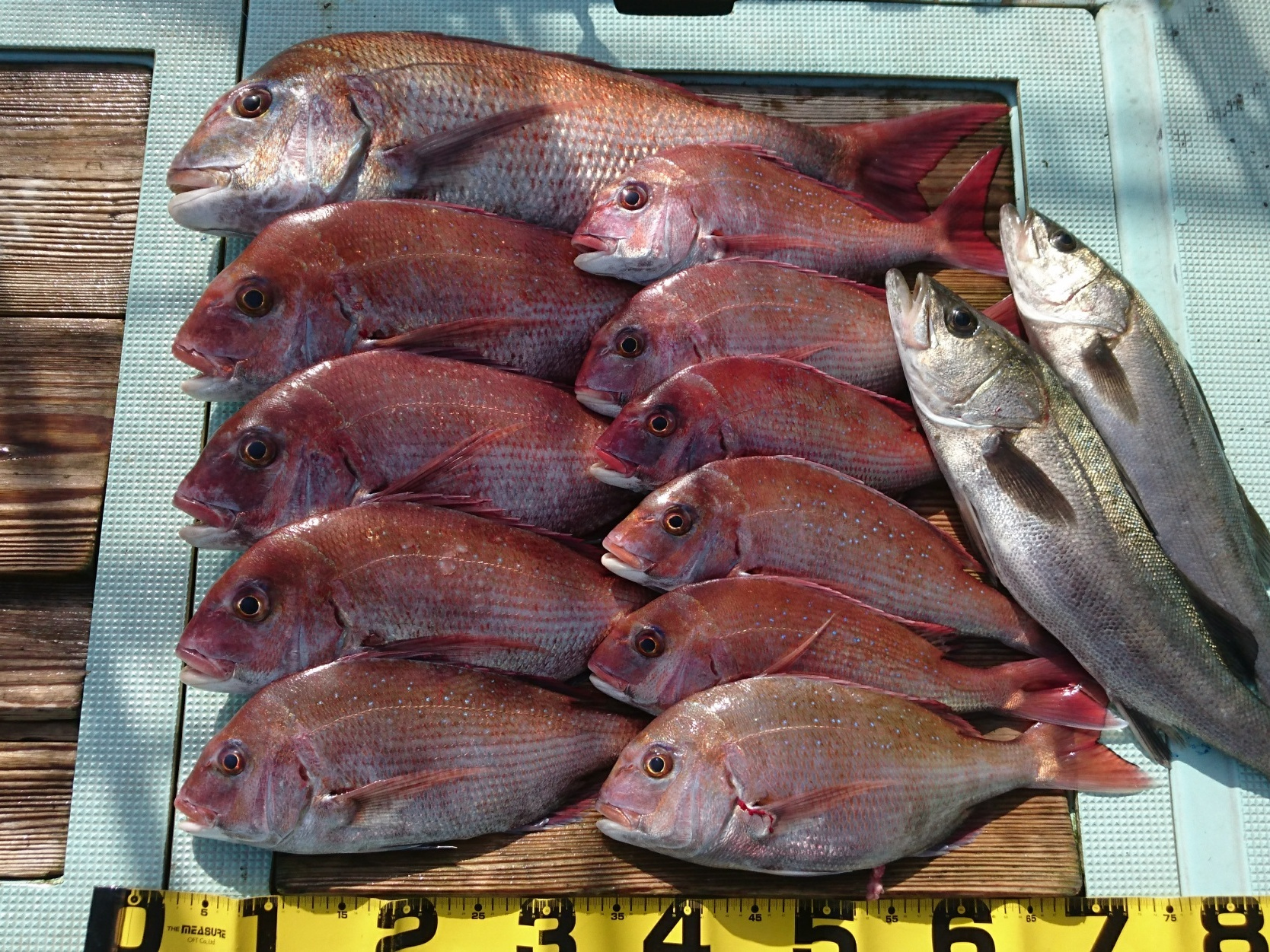 鯛 40~70cm 11匹、セイゴ 2匹