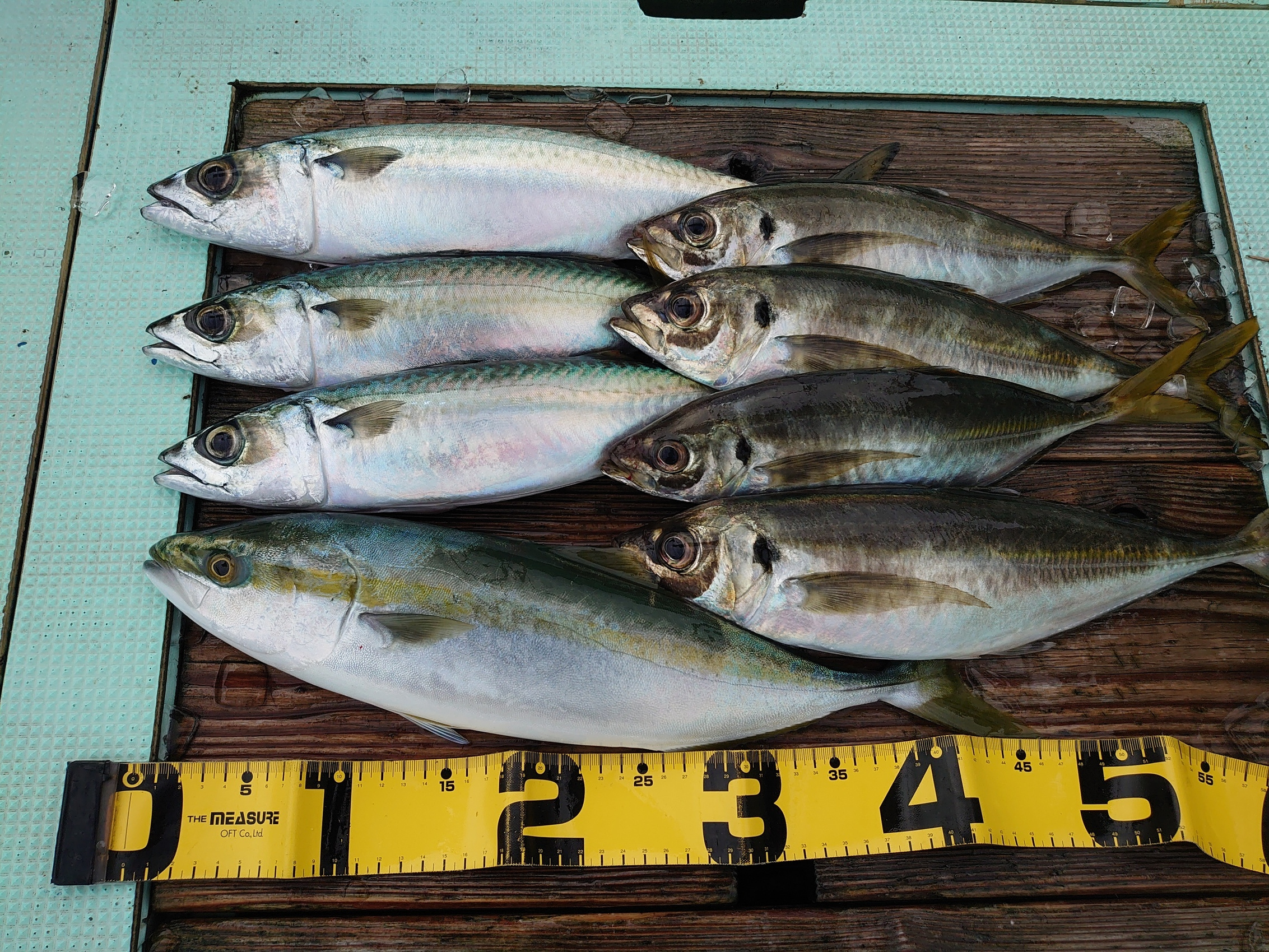 ハマチ 3匹、アジ 1匹、セイゴ 1匹