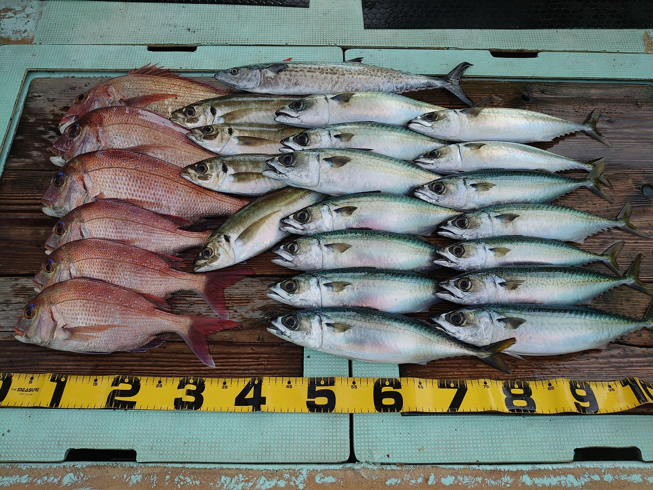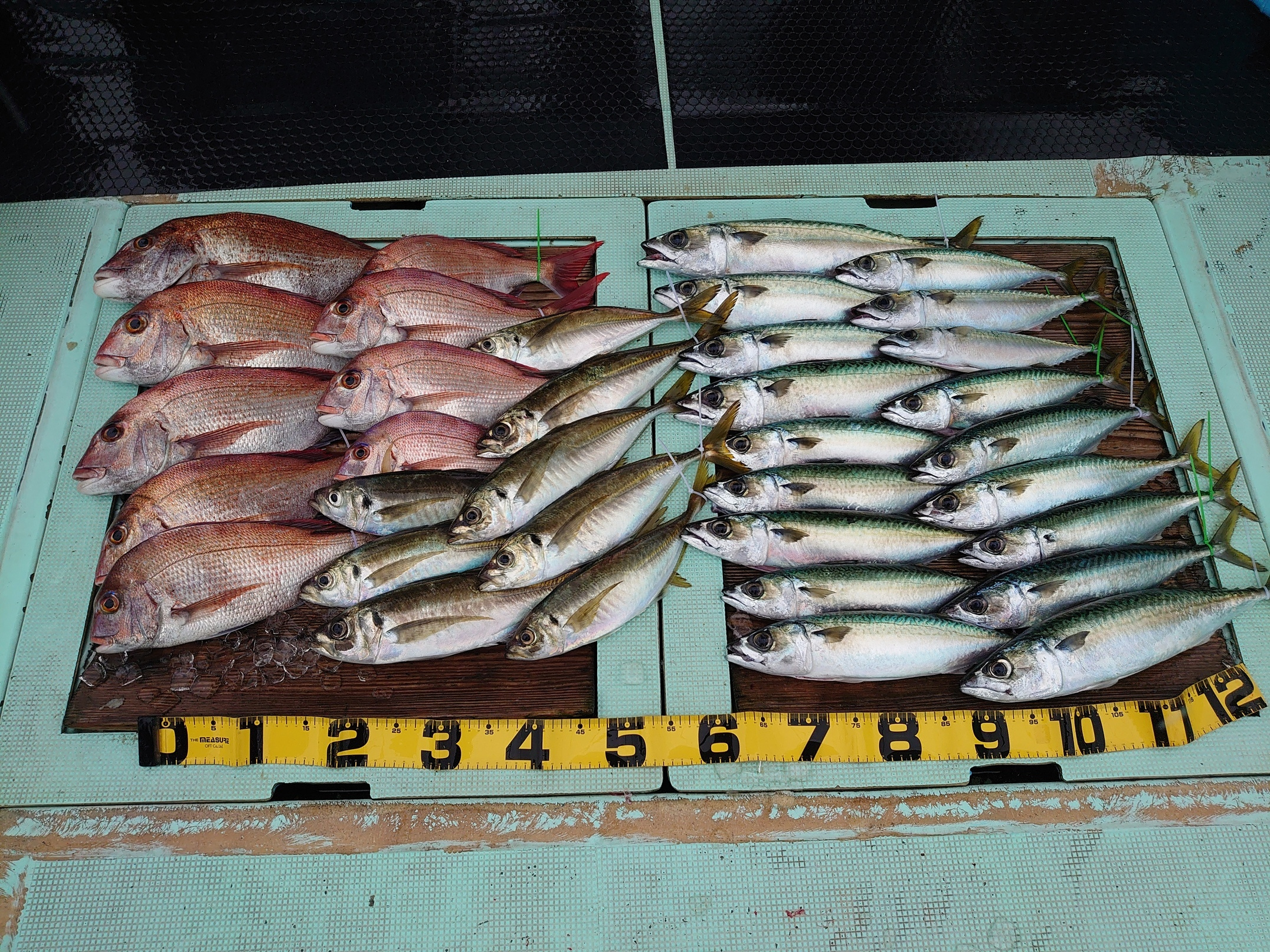 鯛 35~50cm 4匹、サバ 10匹、