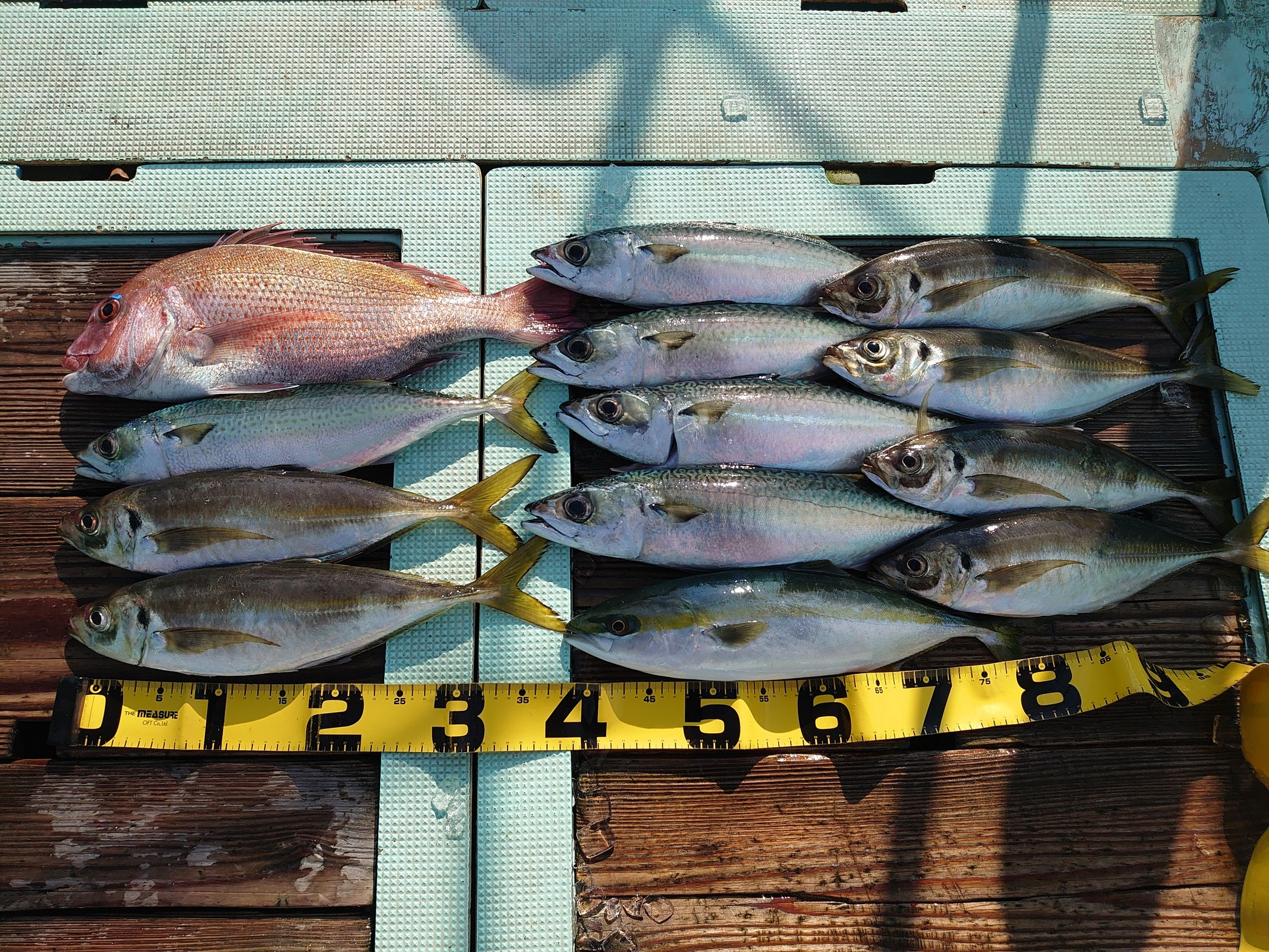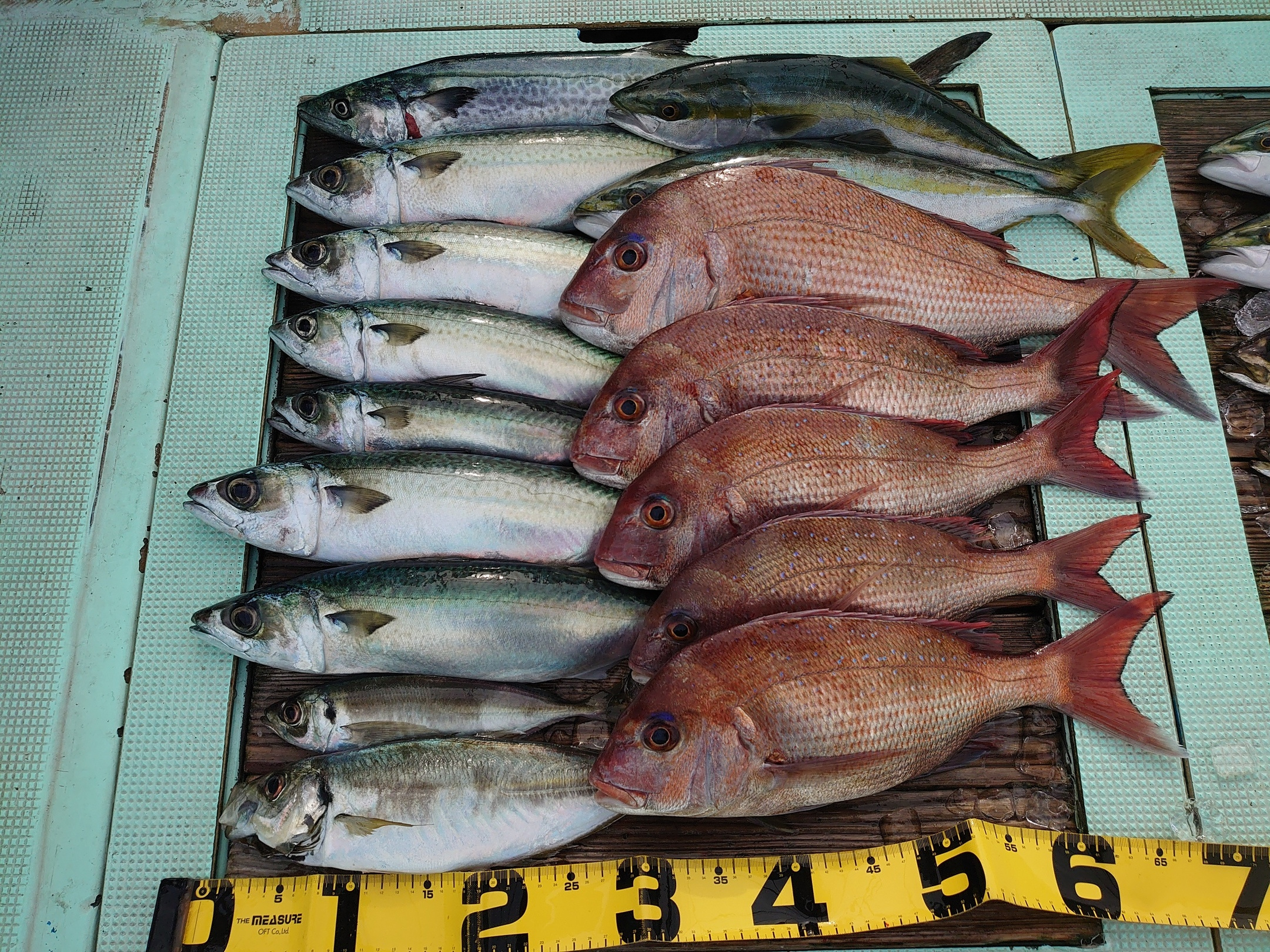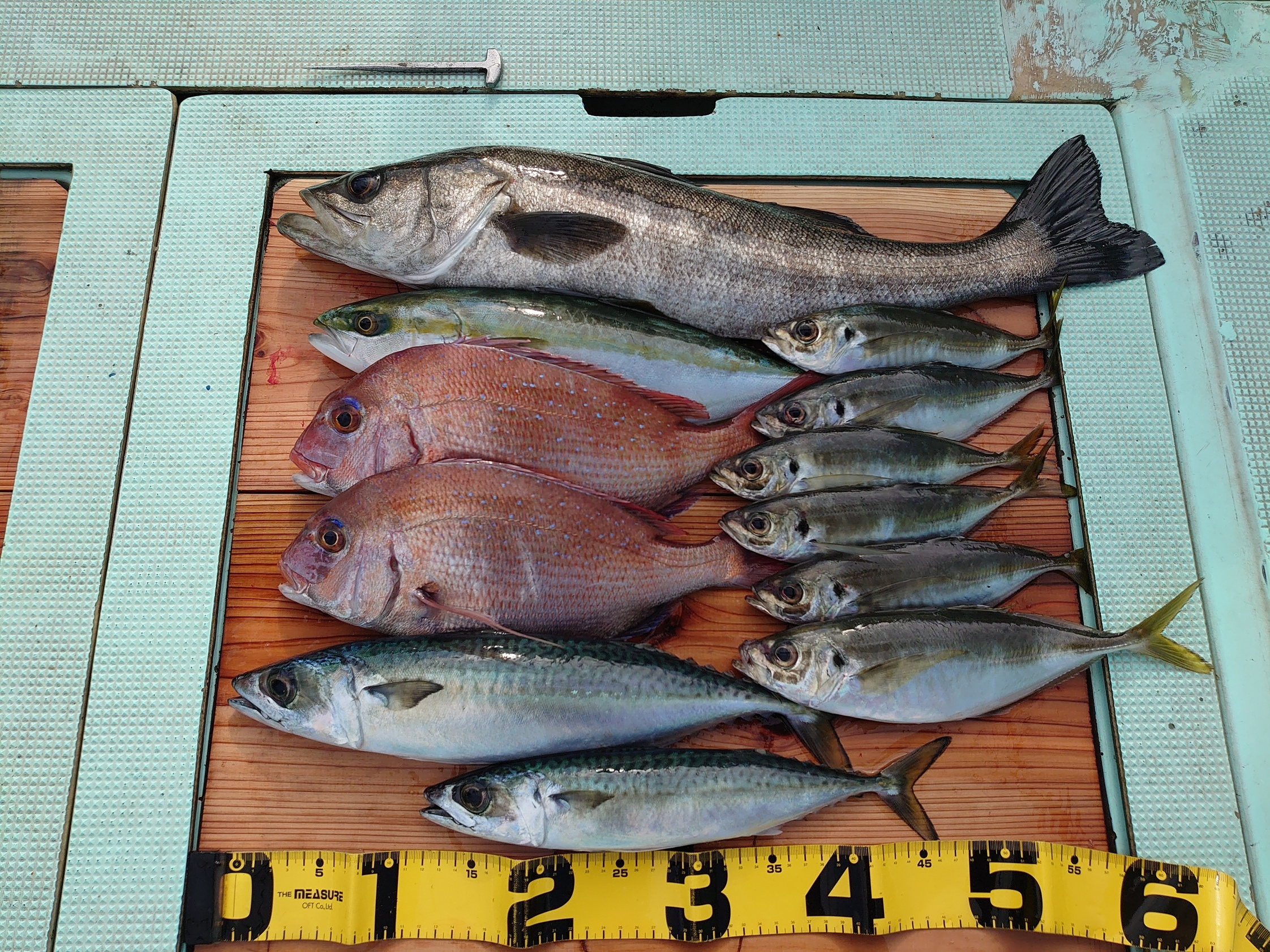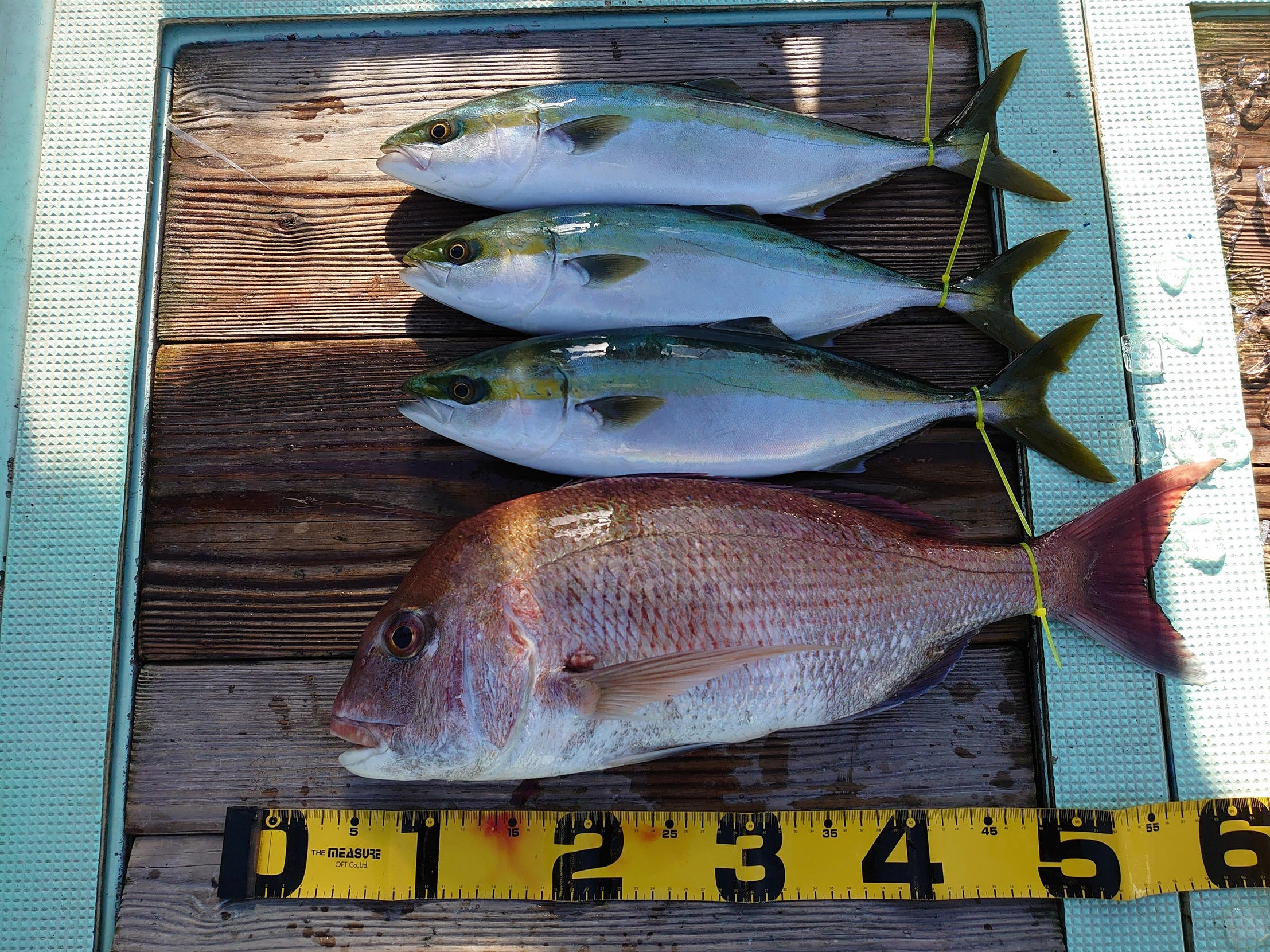 鯛 59~67cm 3匹、鯛 小1匹、ハマチ 7匹