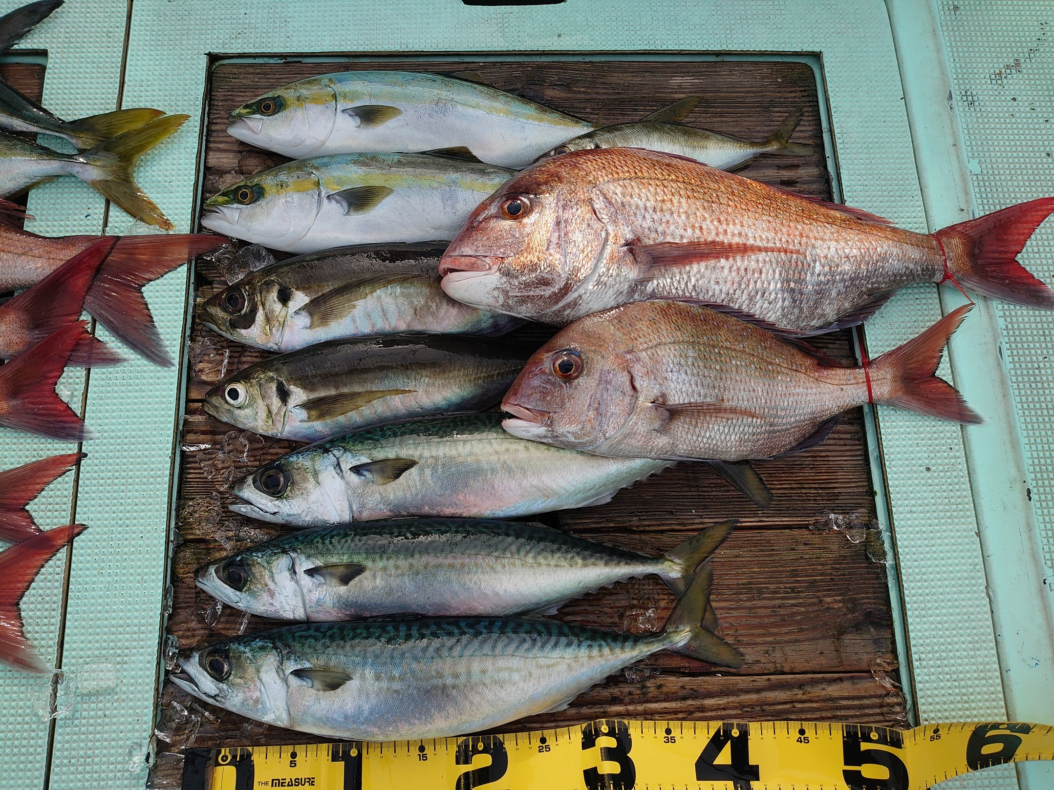 鯛 37~61cm 5匹、ハマチ 9匹