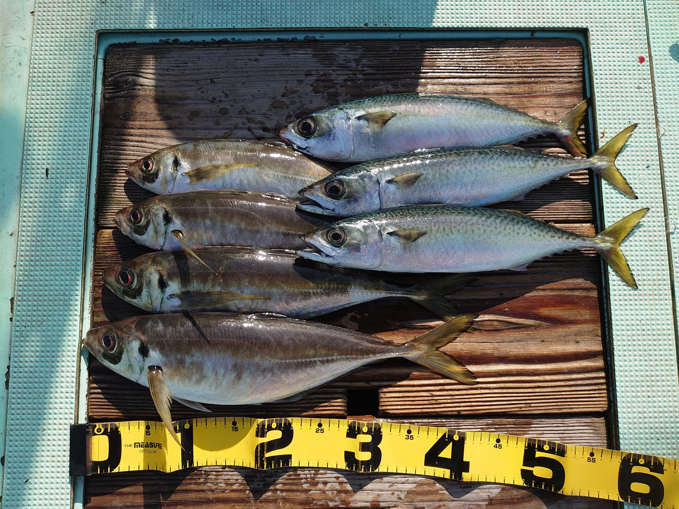 アジ 6匹、ハマチ 1匹