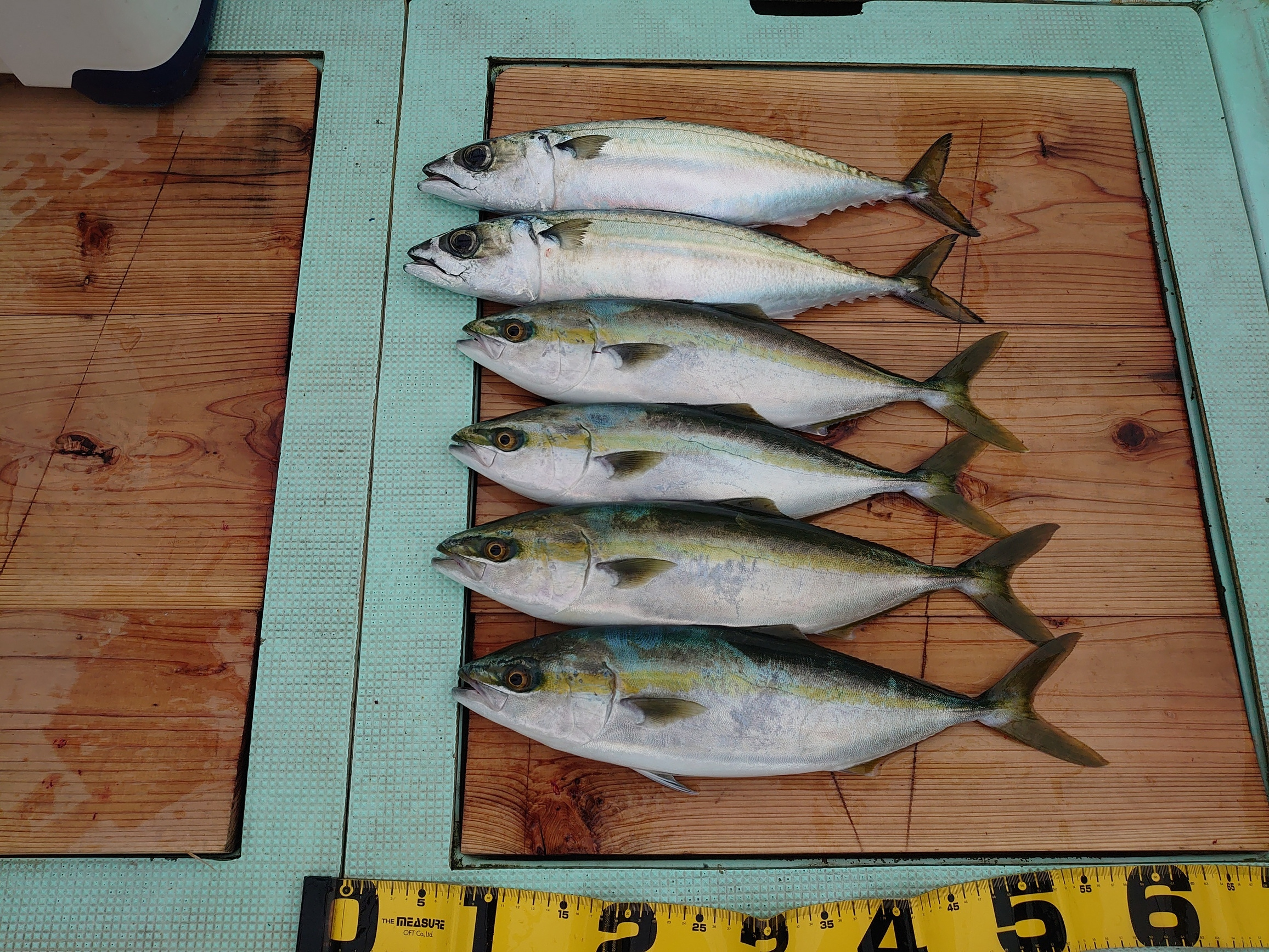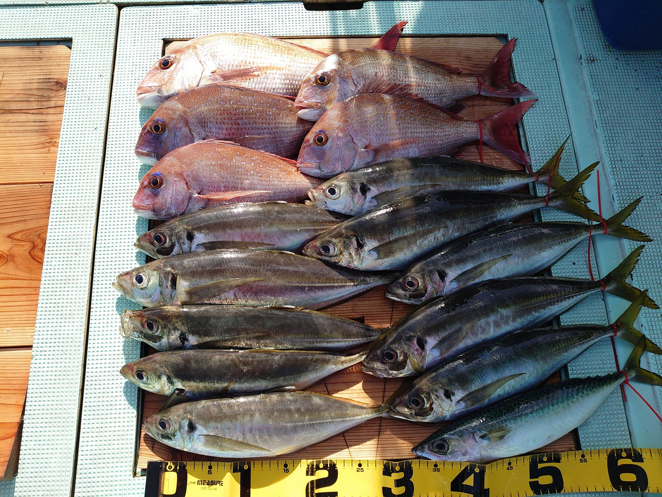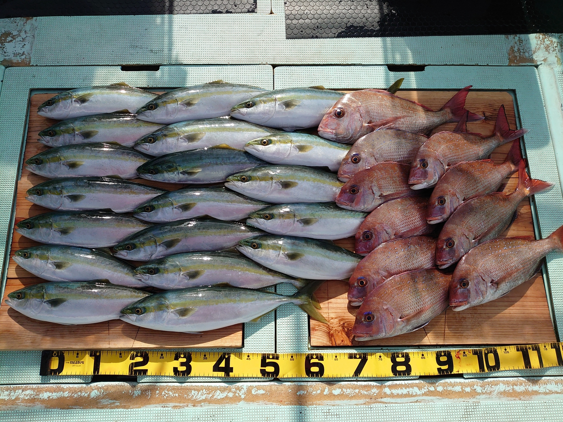 鯛 42、64cm 2匹、ハマチ 6匹、メジロ 1匹