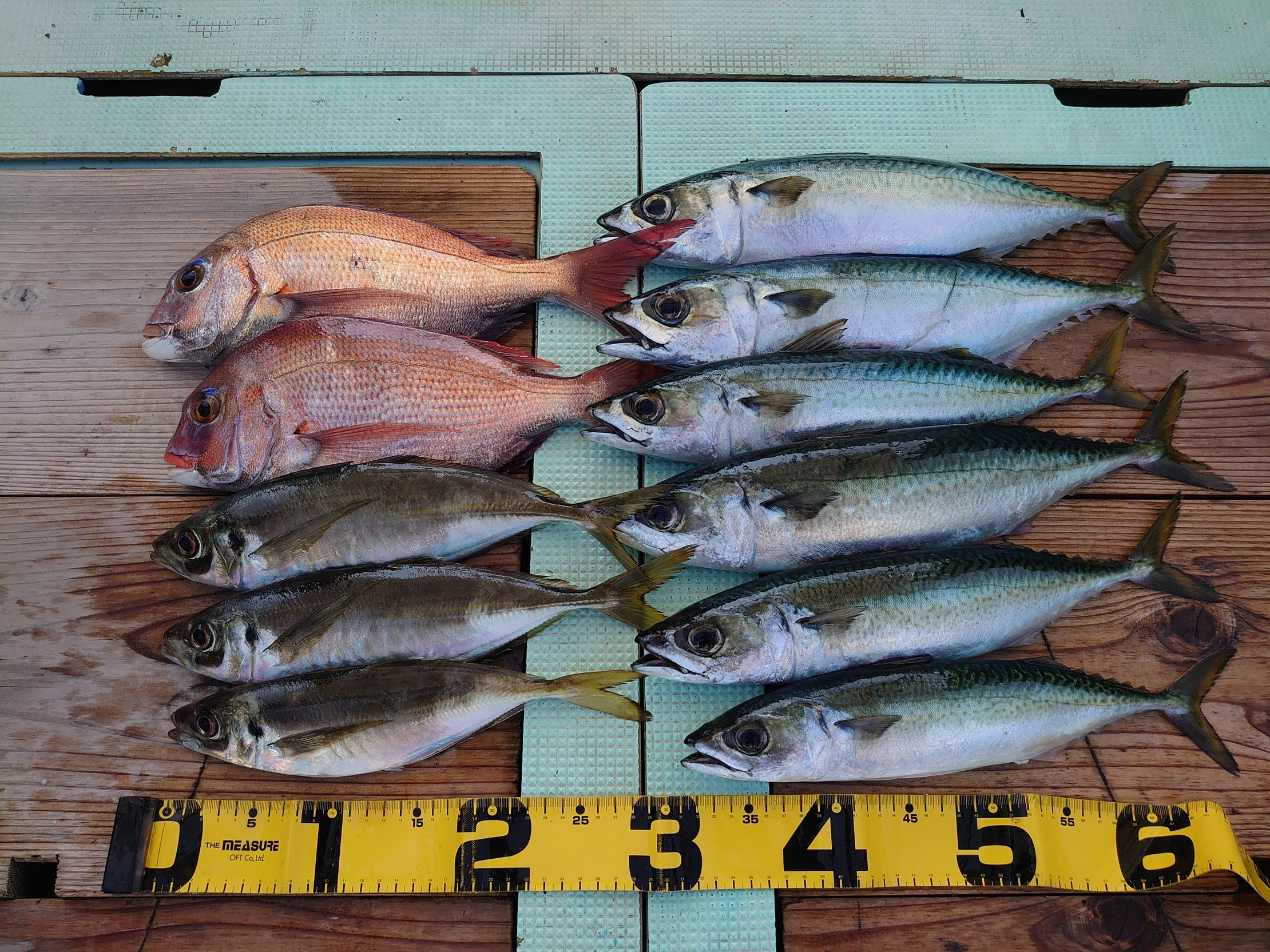 鯛 38~49cm 3匹、サバ 6匹、