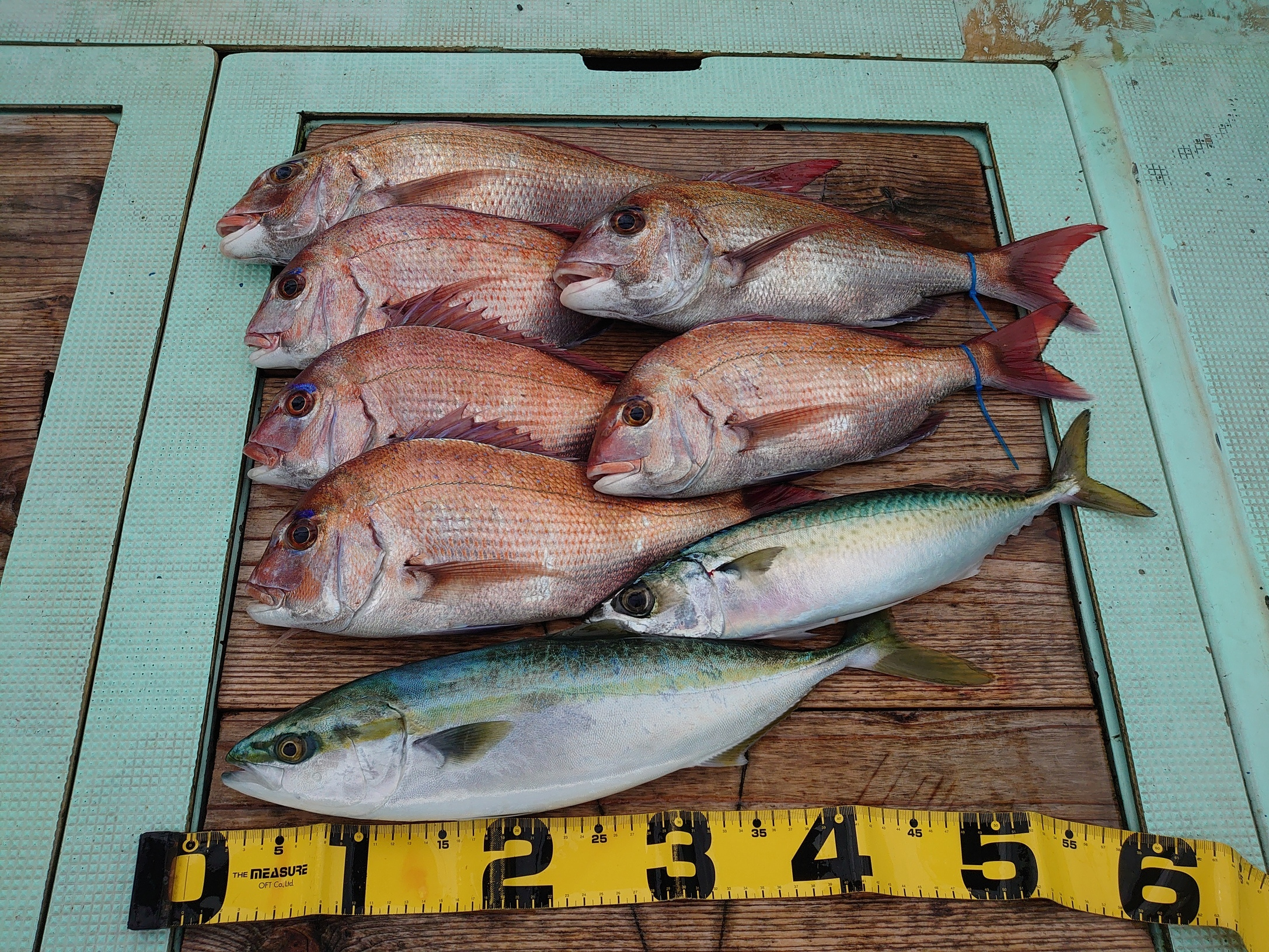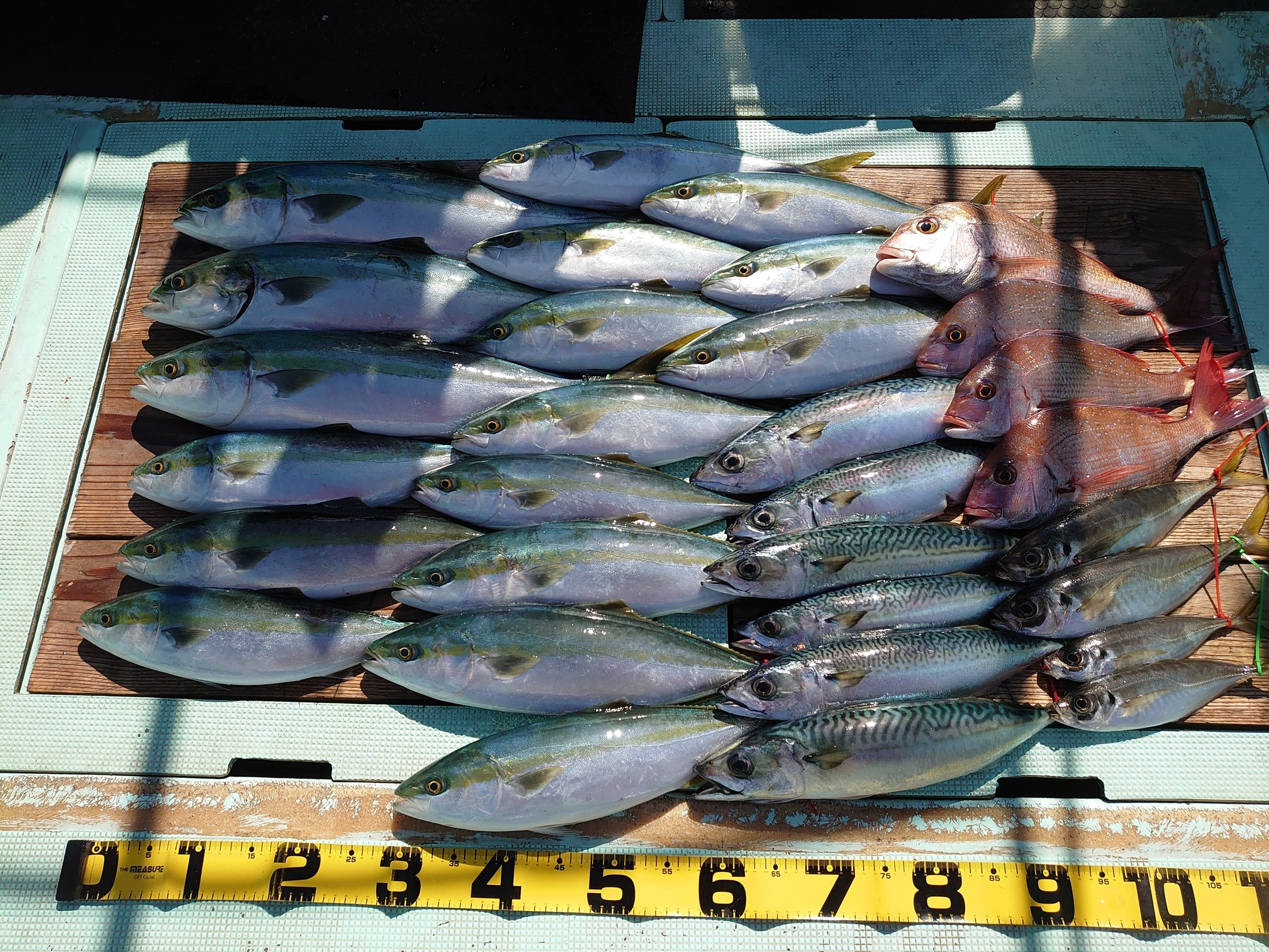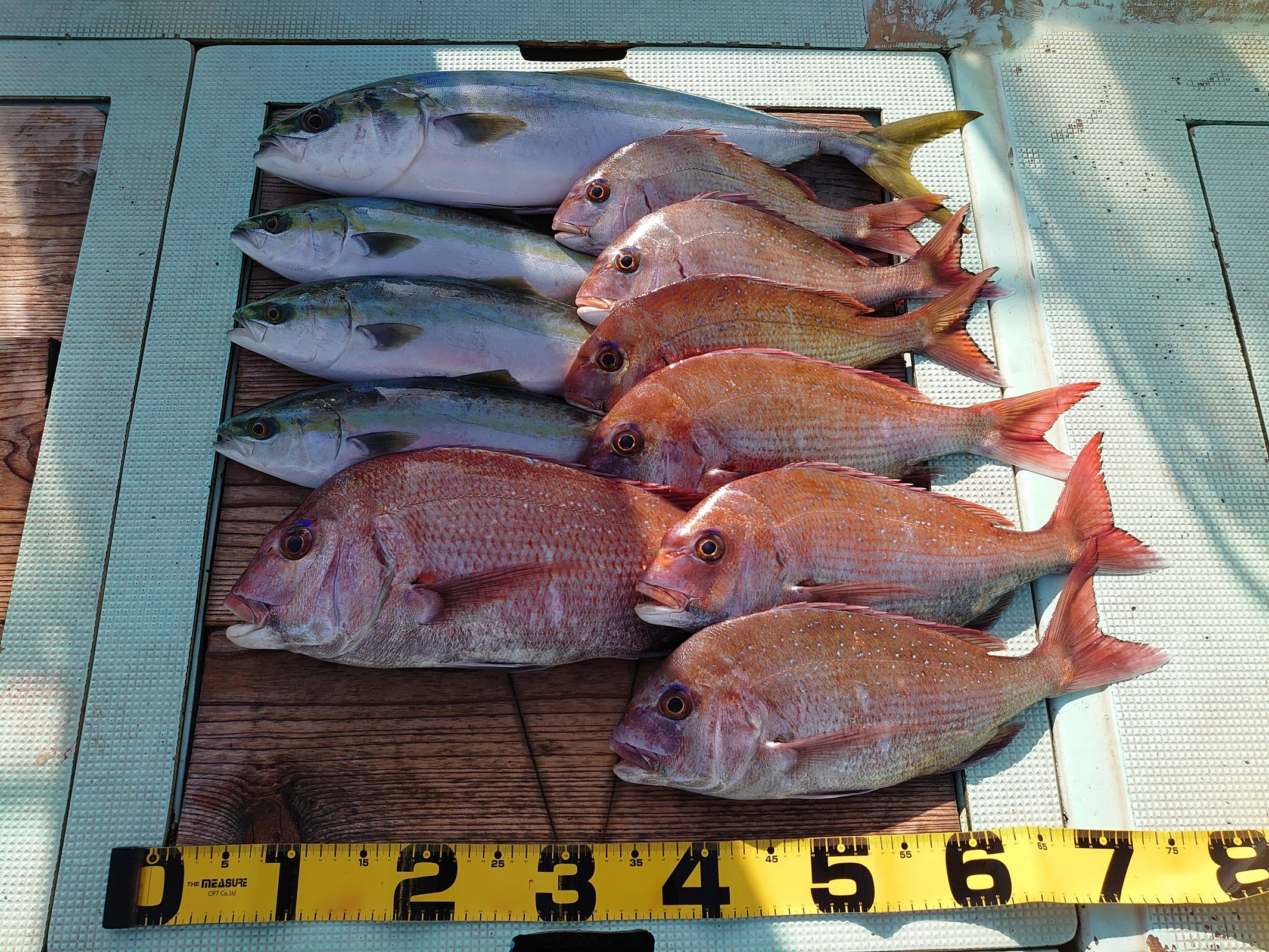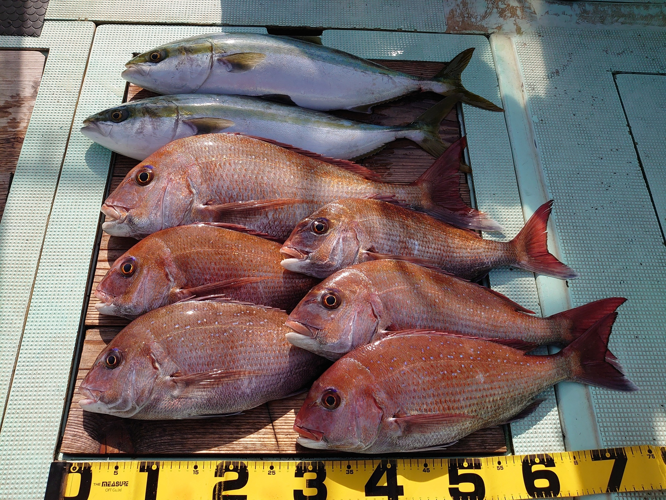 鯛 33~74cm 9匹、アジ 小~中、メジロ 1匹、ハマチ 2匹