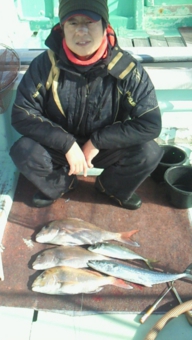 鯛45cm46cm54cm3匹 サゴシ50cm1匹アジ37cm1匹