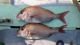 鯛43cm、アジ38、40cm2匹