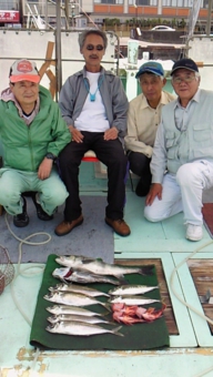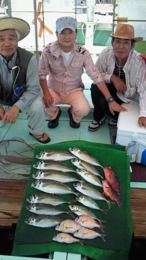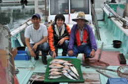 鯛26~41cm3匹、アジ37~43cm8匹、丸アジ28・32cm2匹、ハマチ58cm