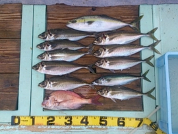 鯛 35~59cm 9匹、アジ 36~38cm 8匹