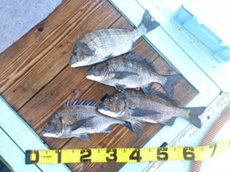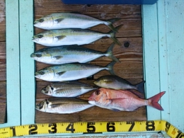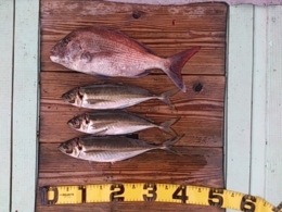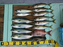 鯛 36~60cm 5匹、アジ 37~46cm 6匹、ハマチ 48、50cm 2匹、チヌ 4匹
