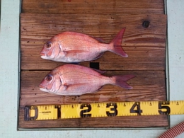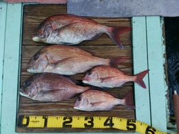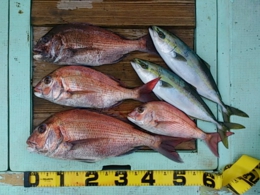 鯛 38~46cm 13匹、ハマチ 47~55cm 4匹