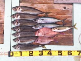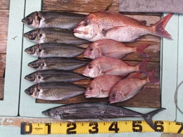 鯛小 2匹、アジ 35~41cm 7匹、