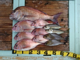 鯛 40、75cm 2匹、アジ 7匹
