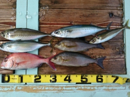 アジ、丸アジ6匹、サバ1匹