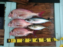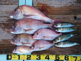 鯛 28~52cm 26匹、イサギ 5匹、サバ 1匹、アジ 1匹