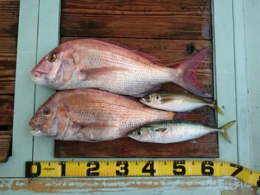 アジ 3匹、鯛 40、60cm 2匹、
