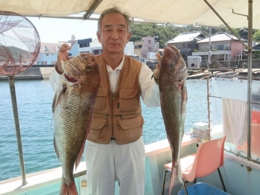 鯛 45、51cm 2匹、74、79cm 2匹、アジ 6匹