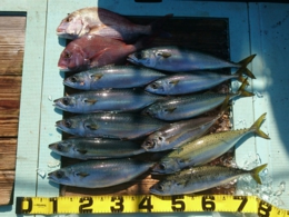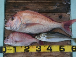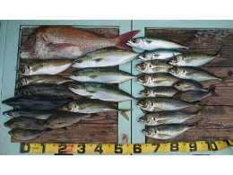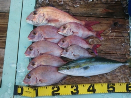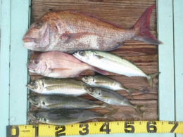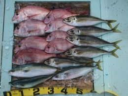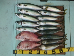 鯛 69cm 1匹、アジ 12匹、