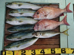 ハマチ 6匹、アジ 1匹