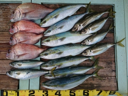 アジ 1匹、ハマチ 1匹