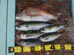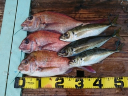アジ 5匹、チヌ 1匹