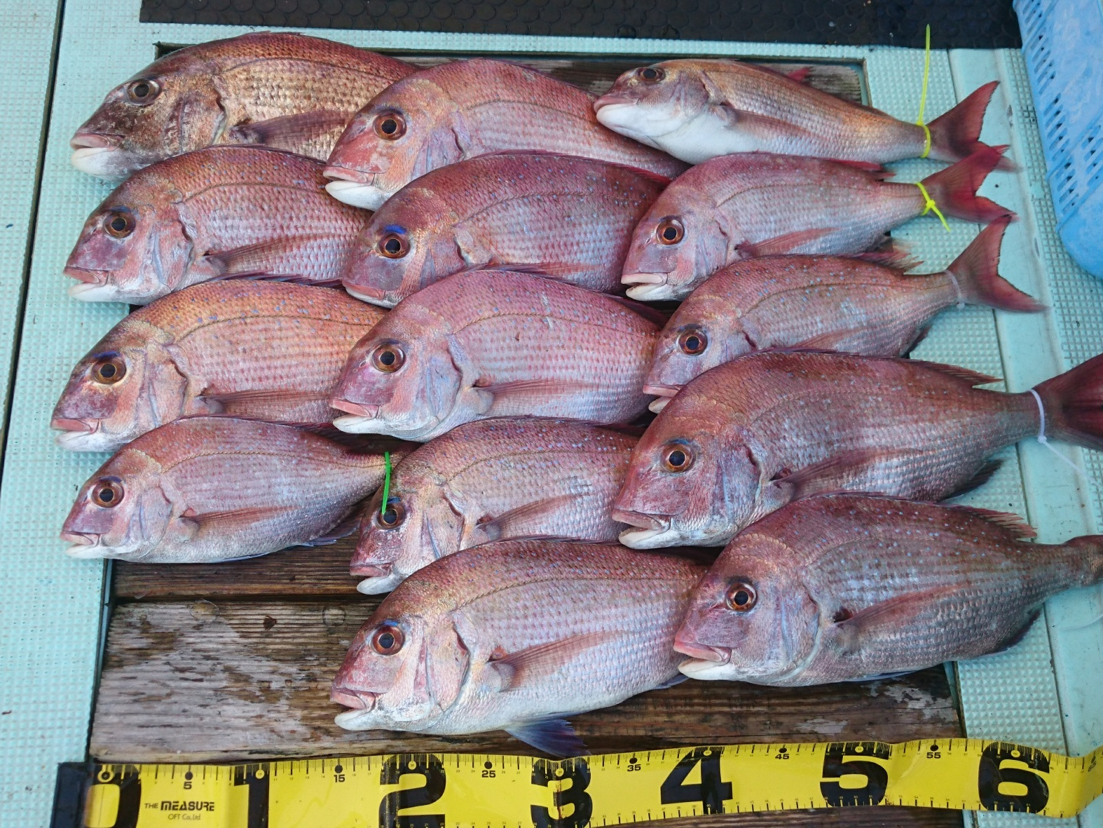 鯛 30~47cm 14匹、アジ 41匹、サバ 3匹、ハマチ 2匹