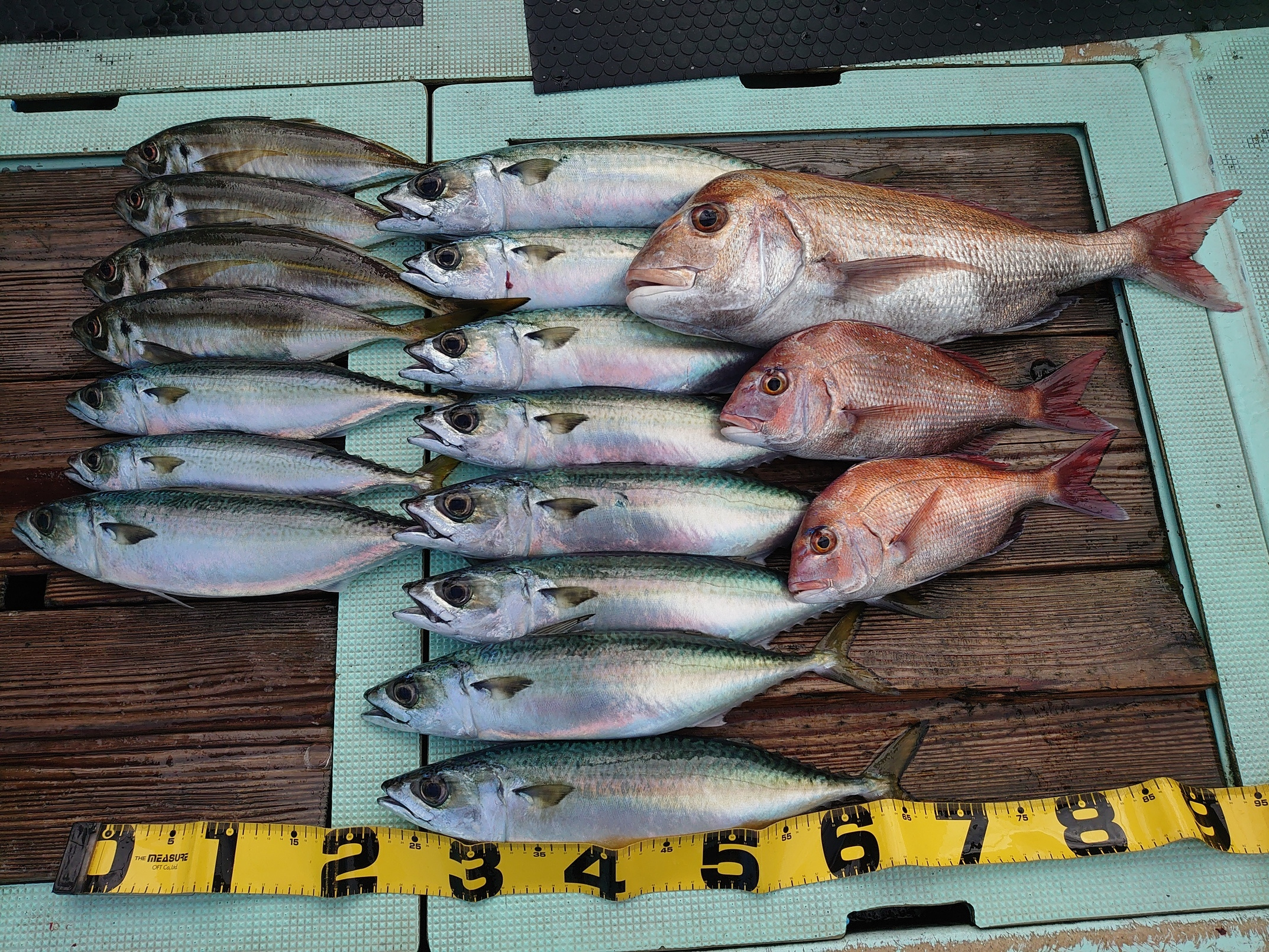 鯛 59~67cm 3匹、鯛 小1匹、ハマチ 7匹